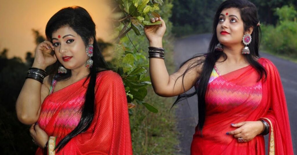 1. Red saree, glowing in motion ❤️